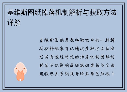 基维斯图纸掉落机制解析与获取方法详解